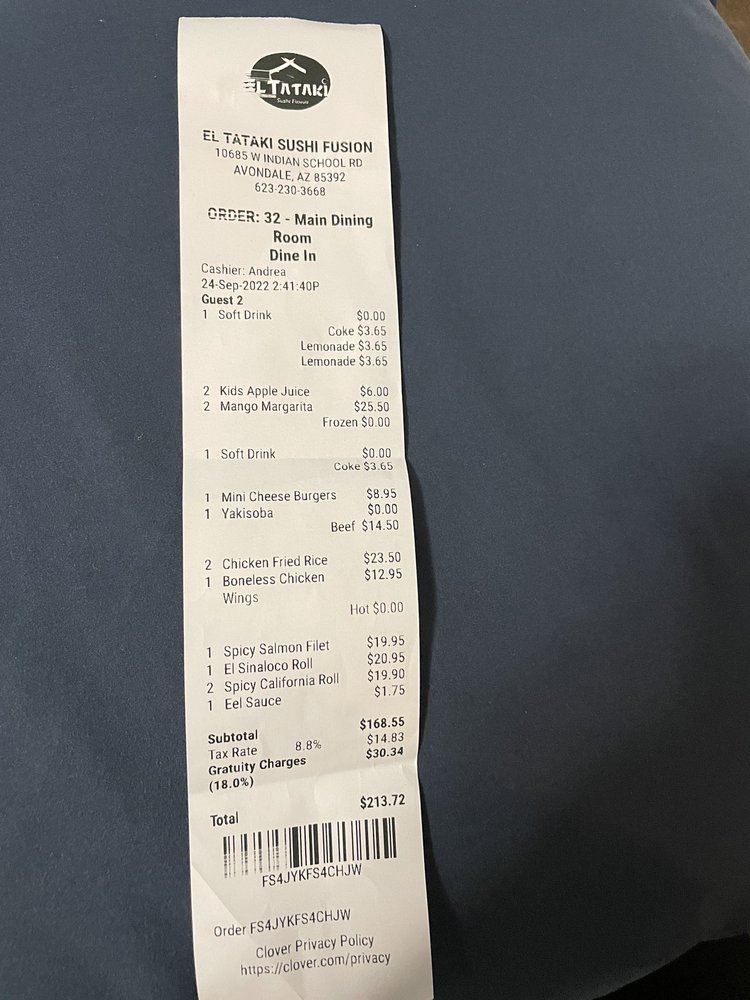 El Tataki Sushi captures a unique blend of Mexican and sushi cuisines that is both exciting and flavorful. Located in Avondale, AZ, this trendy venue offers a vibrant atmosphere suitable for groups and families alike. The menu is diverse, featuring standout items like the deep-fried Navolato Roll, packed with shrimp and bacon, and the El Sinaloco Roll, a mouthwatering fusion with shrimp tempura and orange sauce.